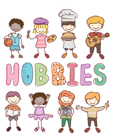バスケット ボール 絵画からの別の趣味で棒人間子供のイラストを焼く ギター 読書 バレエ 執筆に写真 の写真素材 画像素材 Image